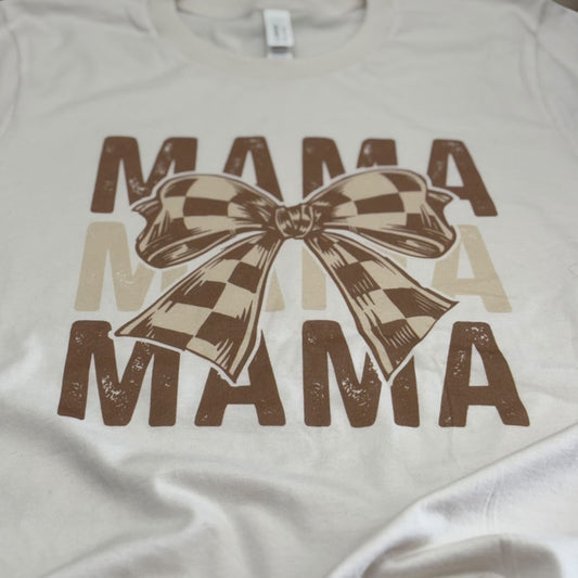 Mama Brown Checkered Bow T-Shirt