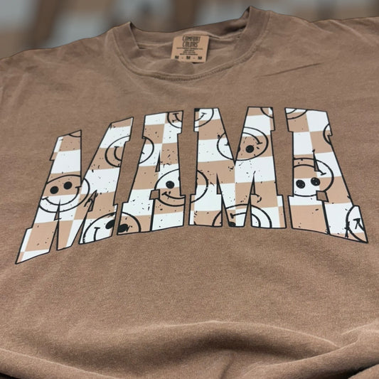 Mama Smiley Brown Checkered T-Shirt