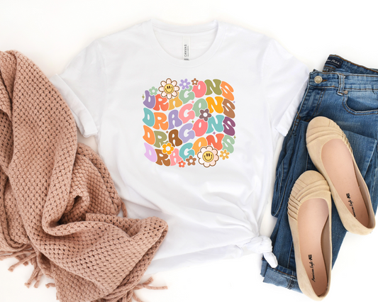 Retro Dragons Floral Spirit Wear T-Shirt